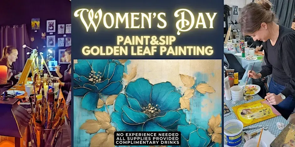 Join WonderCat for a relaxing Women's Day paint & sip session where you'll learn to create stunning golden leaf designs on canvas!